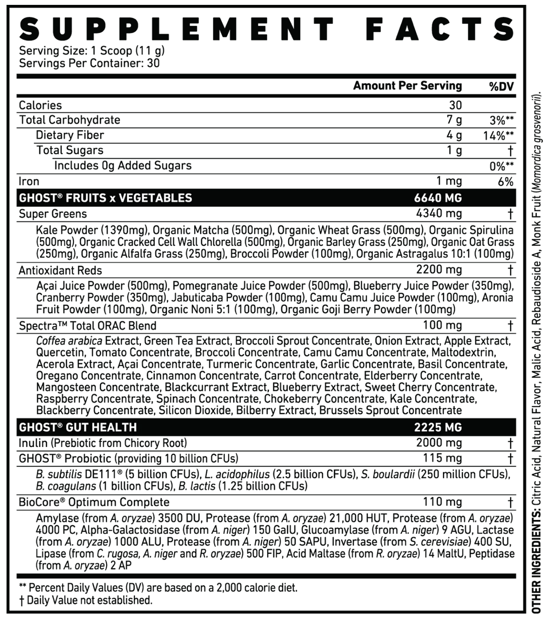 It’s easier than ever to get your fruits and veggies in! GHOST® GREENS combines 19 individually sourced Greens and Reds with a full 100mg dose of Spectra™, Prebiotics, 10 billion CFUs Probiotic and the super-premium BioCore® Optimum Complete Digestive Enzymes…plus, we’ve partnered with the legends at ONE TREE PLANTED to plant a tree for every unit sold. 1 Tub = 1 Tree!