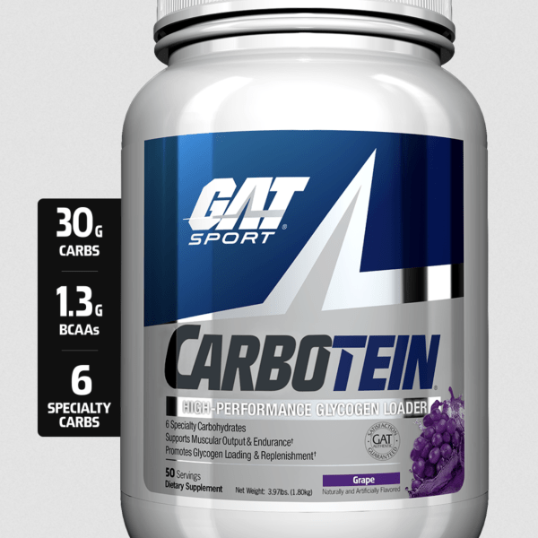 Maximize muscular output, recovery, and building! This scientifically advanced, high-performance glycogen loader uniquely combines 6 fast-acting, specialty carbohydrates with branched-chain amino acids, plus multiple electrolytes and citric acid cycle intermediates. That’s the driving force of GAT Sport CARBOTEIN!